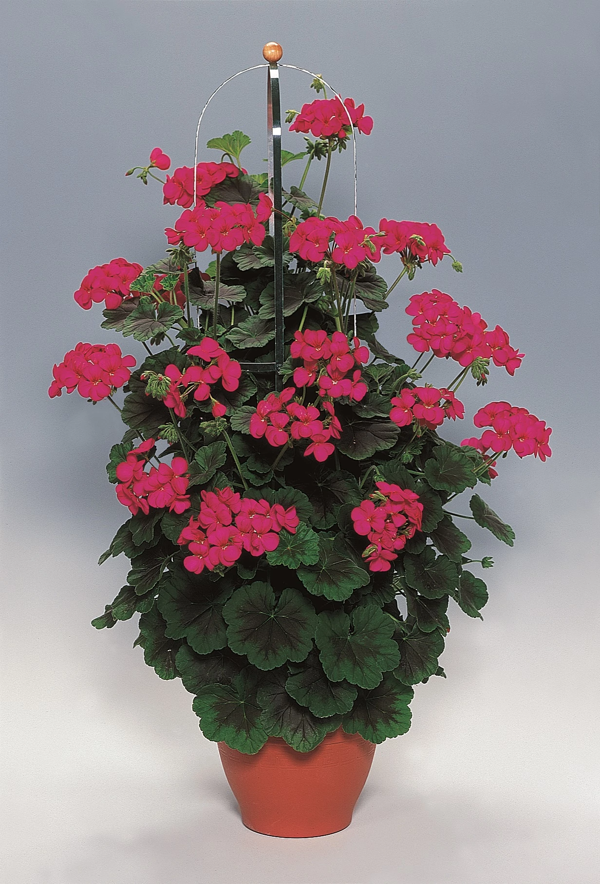Antik Violet: Hosszú ízközöket nevelő, gyors növekedésű kerti muskátli típus, nagy bíborszínű virágokkal és dekoratív barna-karéjos levelekkel. Nagy méretű, legalább 30 cm-es konténerbe ültessünk 3 db dugványt, és támasztékként tűzzünk mellé 80 cm magas virág-létrát, vagy bambusz rudakat. A gyorsan fejlődő hajtásokat időnkét rögzítsük a támasztékhoz, így alakítva ki a piramidot. Támaszték nélkül szétterülő növekedésű lesz.