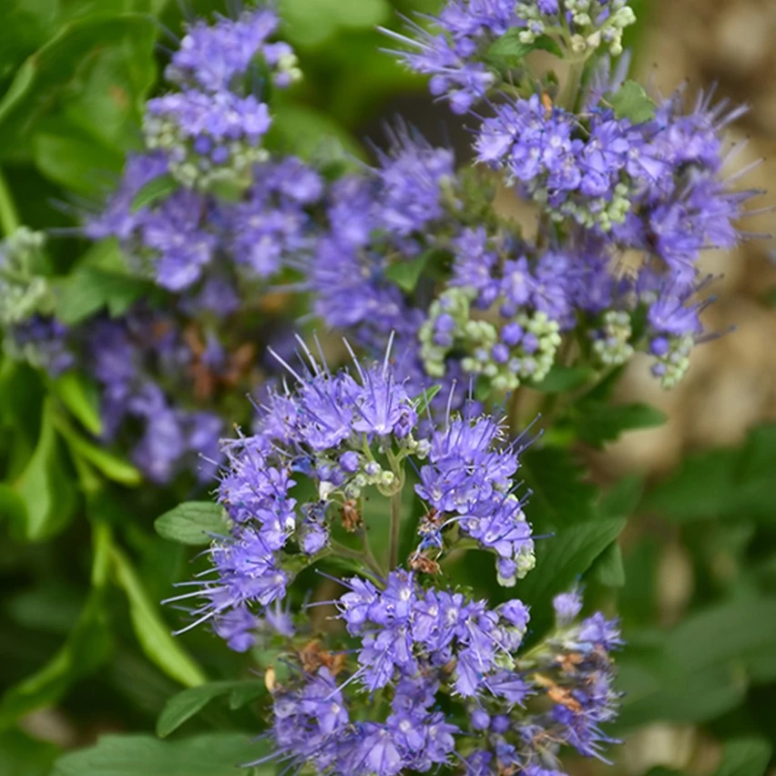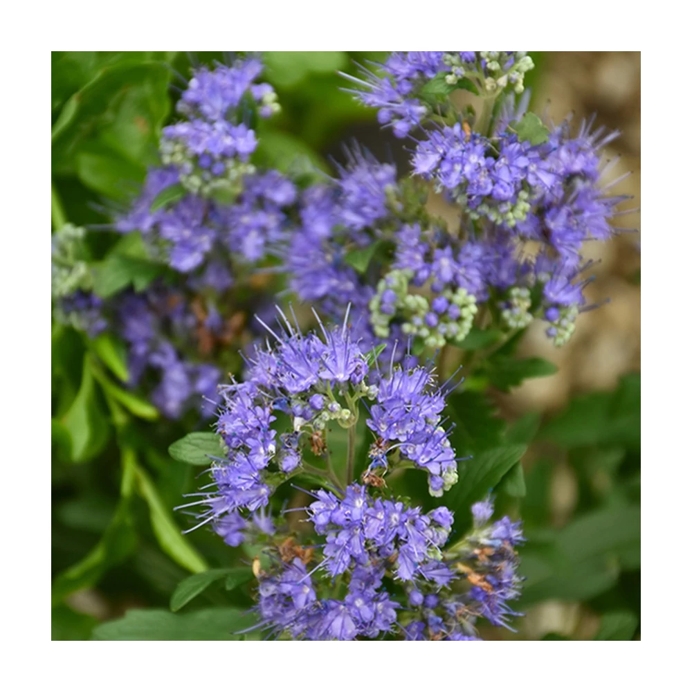 Caryopteris 'Blue Gem' (Kékszakáll): Gyakran ültetett lombhullató félcserje, 50-70 cm magasra megnövő bokrán szeptembertől hetekig hozza liláskék virágait. A 'Blue Gem' egy kimondottan kompakt növekedésű, sűrűn bokrosodó fajta, égszínkék virágtömege szeptembertől díszíti kertünket, alkalmas kisebb kertek, vagy díszcserepek beültetésére. Méhek, lepkék és hasznos rovarok folyamatosan látogatják, kertünket igazi "élő-hellyé" varázsolva.