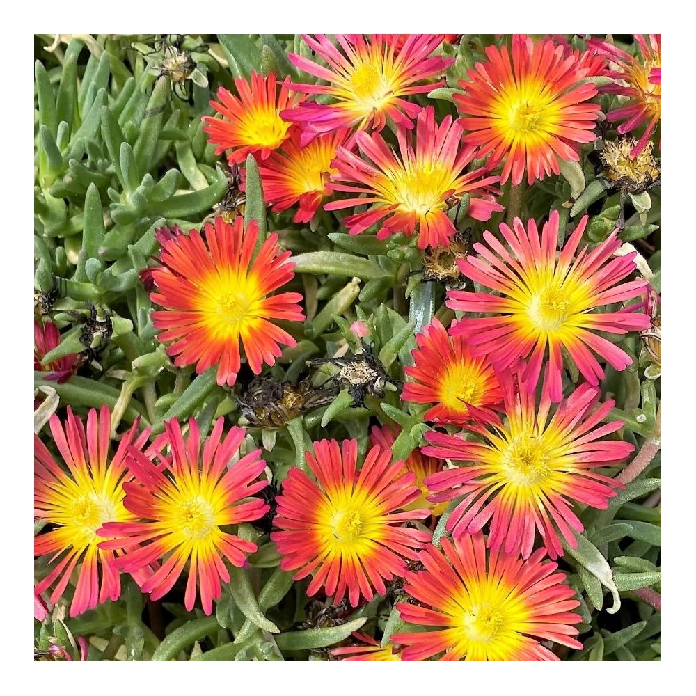 Delosperma 'Wheels of Wonder Fire Wonder' (Délvirág, kristályvirág): Dél-Afrikában októberben tavaszodik. Ilyenkor a Karoo sivatagban 10 hónapos aszály után, végre esőfelhők gyülekeznek, és a várva-várt csapadék igazi csodát művel: a kopár síkság, néhány nap alatt, csodálatos virágoskertté válik. Ebben a színorgiában vesznek részt a Delosperma fajok is. A nemesített fajták már nemcsak 2-3 hétig nyílnak, mint sivatagi őseik, henem egész nyáron ontják, csillogó színű, virágaikat. Örökzöld, húsos leveleikkel megbízhatóan áttelelnek, igénytelen, kedves, dekoratív növények, napimádók és néhány napos nyaralás után hazatérve sem találjuk őket összefonnyadva. Rendkívül szárazságtűrők. Ültessük napos virágágy szegélyébe, balkonládába, kőedénybe, vagy sziklakertbe. A Wheels of Wonder fajták hosszabb ízközűek, kissé lefutók, a SunDiamonds fajták bokrosabb, kompaktabb növekedésűek.