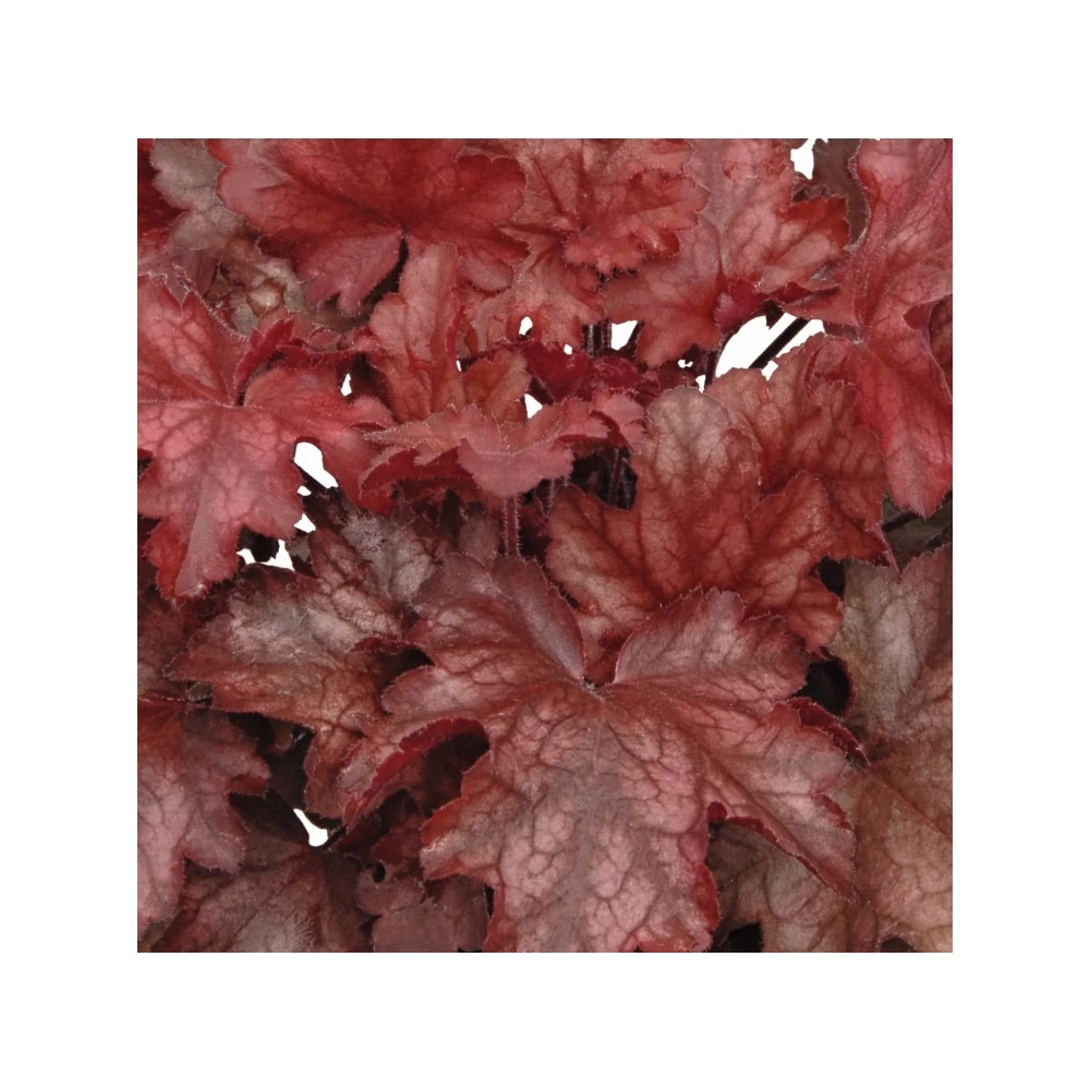 Heuchera 'Chateau Rouge' (Tűzeső): Barnás rózsaszín árnyalatban pompázó levelei ezüstösen csillognak. Különösen szépen mutat virágzáskor. Ültetéstől számítva a második évtől bőven hozza nagy, fehéres-rózsaszín virágait.