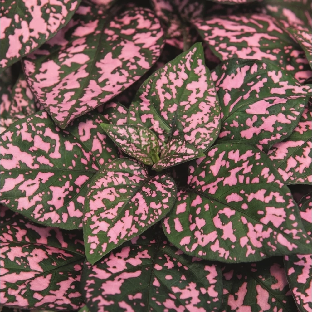 Hypoestes Hippo Pink (Pettyes levél): A szobanövényként ismert pettyes levél kerti változata. 30-40 cm-es bokorrá megnövő, dekoratív, márványozott színezésű leveleivel díszítő kerti növény. Naptűrő, szárazságtűrő, igénytelen, kertbe vagy 25-30 cm-es edénybe ültethető. A Madagaszkárról származó növény, napon, agy félárnyékban egyaránt vidám hangulatot hoz kertünkbe, balkonunkra.