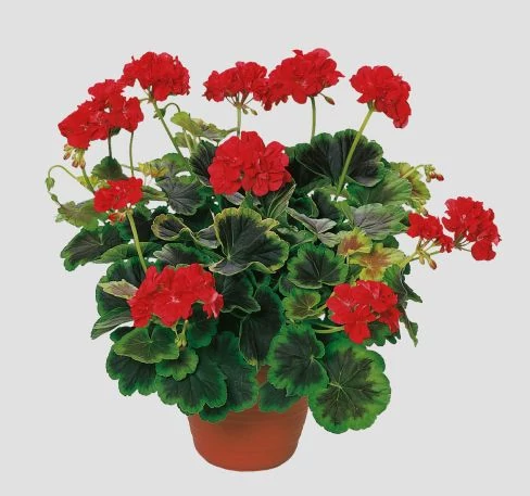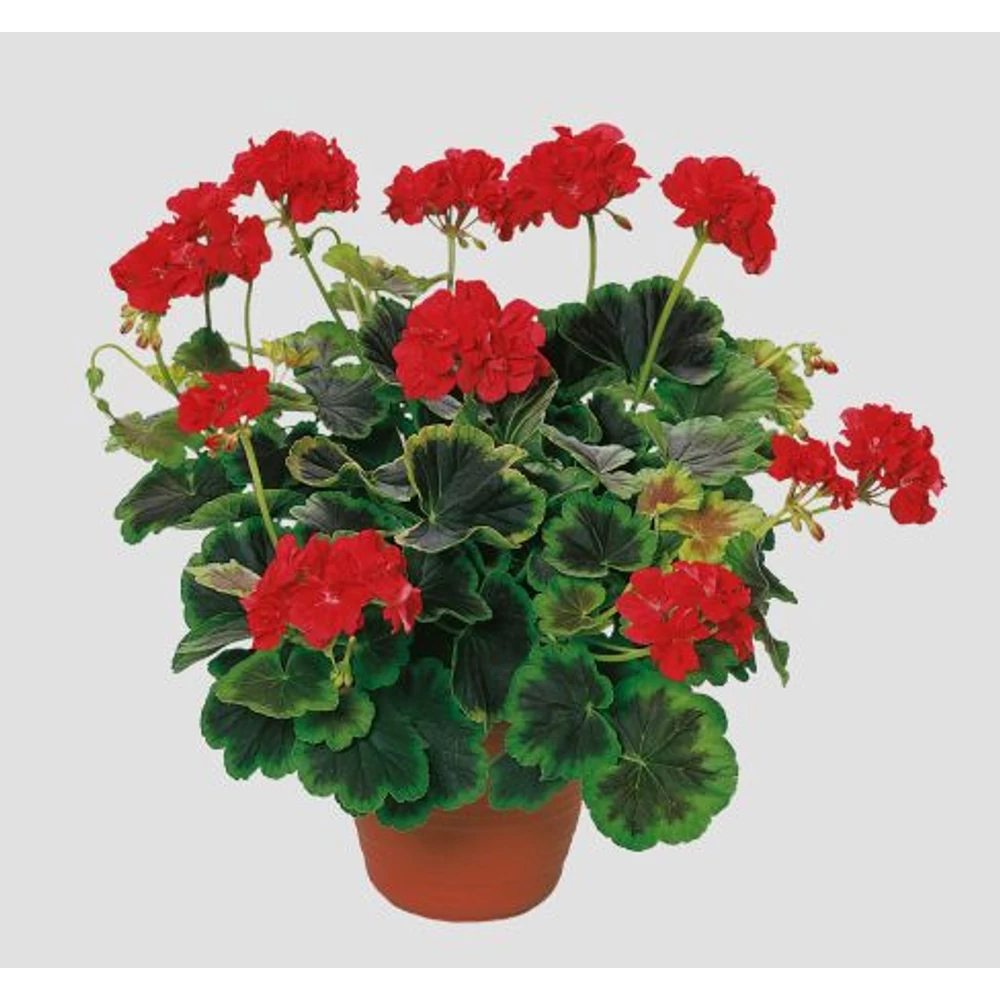 Occold Shield: Zöldes-barna levelek világoszöld szegéllyel, kis méretű skarlátpiros telt virágok, kompakt növekedés. Valamennyi tarka levelű muskátli vegyes beültetések kitűnő alapanyaga, a hatásos kombinációk száma végtelen.