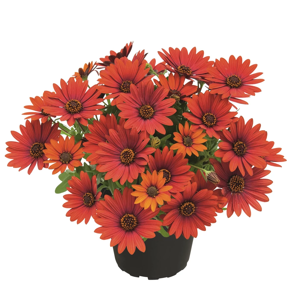 Osteospermum SUMMERSMILE 'Sangria' (Cseppecskevirág): Dél-Afrika margarétája, kecses megjelenésű, intenzív színű virágaival mosolyog ránk egész nyáron. Imádja a napos fekvést, az egyenletes vízellátást, és nem kedveli a hűvös sarkokat és az állandó túlöntözést. Viszont folyamatos virágzást csak folyamatos tápanyagutánpótlás mellett várhatunk tőle. Ezt tápoldatozással és tartós hatású műtrágyákkal (pl. Osmocote, Multicote, vagy érett marhatrágya készítményekkel) biztosíthatjuk. Az elnyílott virágok eltávolítása további bővebb virágzást eredményez.