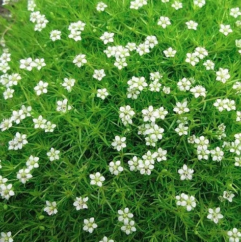Sagina subulata 'Irish Moss' (Szálkás zöldhúr, csillagmoha): Sűrű, mohaszerű párnát képező, gyepszerűen terjedő, évelő növény, a szegfűfélék családjába tartozik. Hosszúkás, keskeny levelei üdezöld színűek, jelentéktelen, apró, fehér virágai tavasszal jelennek meg. Sziklakertekbe vagy járólapok közé ültethetjük, de akár nagyobb felületen gyeppótlóként is elhelyezhető. Magassága kb. 5 cm, nyírást nem igényel. Elég gyorsan terjed magától is, de a nagyobb töveket kisebb csomókba szétszedve és szétültetve, könnyen szaporíthatjuk. Kertünk üde színfoltja lehet.