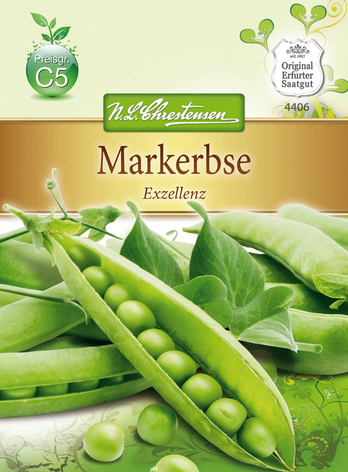 Velőborsó 'Exzellenz' (Pisum sativum): Ez, a nagy hozamú fajta, kb. 10 cm hosszú hüvelyeket nevel, a friss szemek sötétzöld színűek. Nemcsak frissen fogyasztható, hanem alkalmas konzerválásra, vagy hűtött tárolásra is. A jó ízek kedvelőinek ajánljuk!