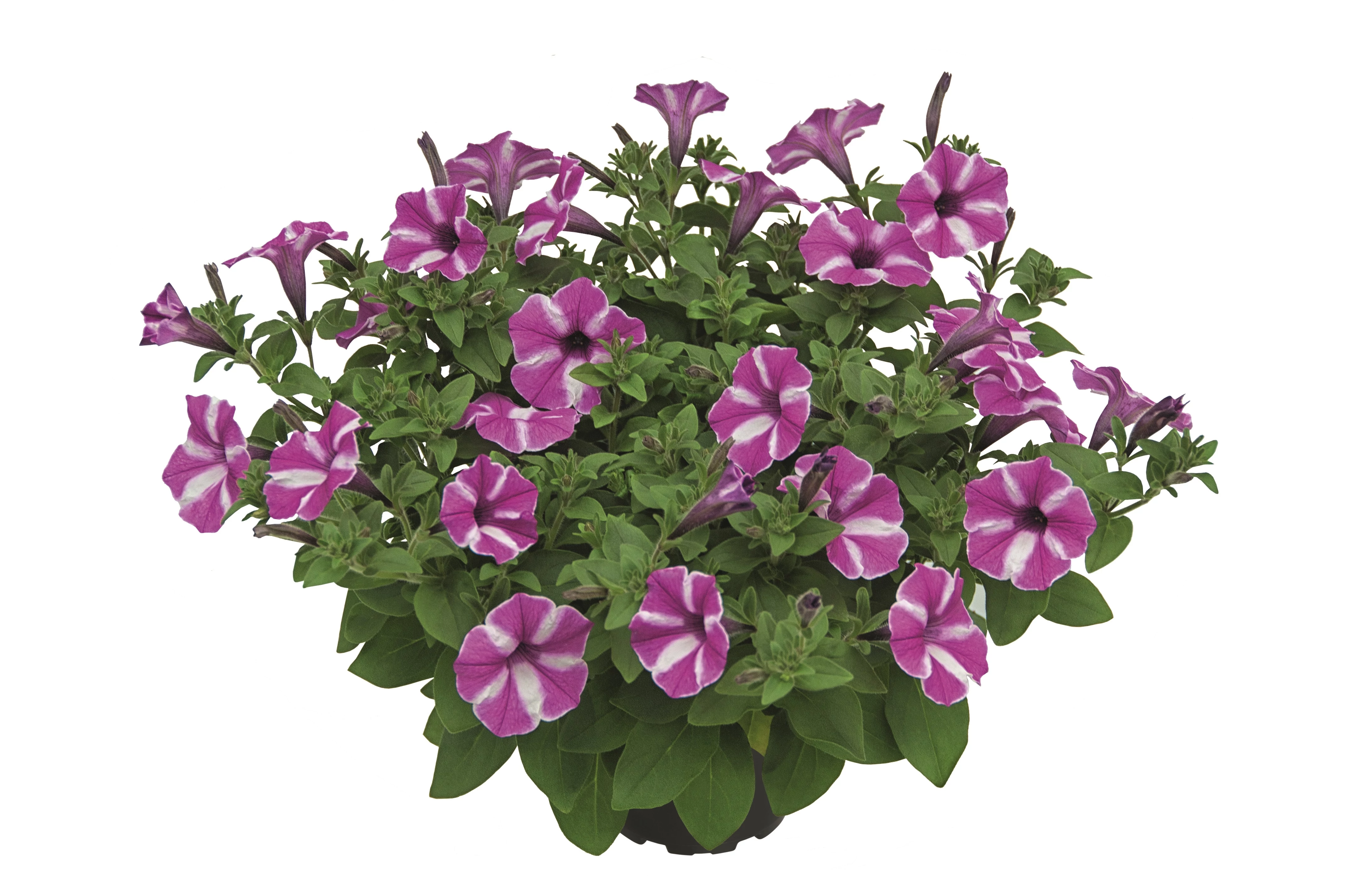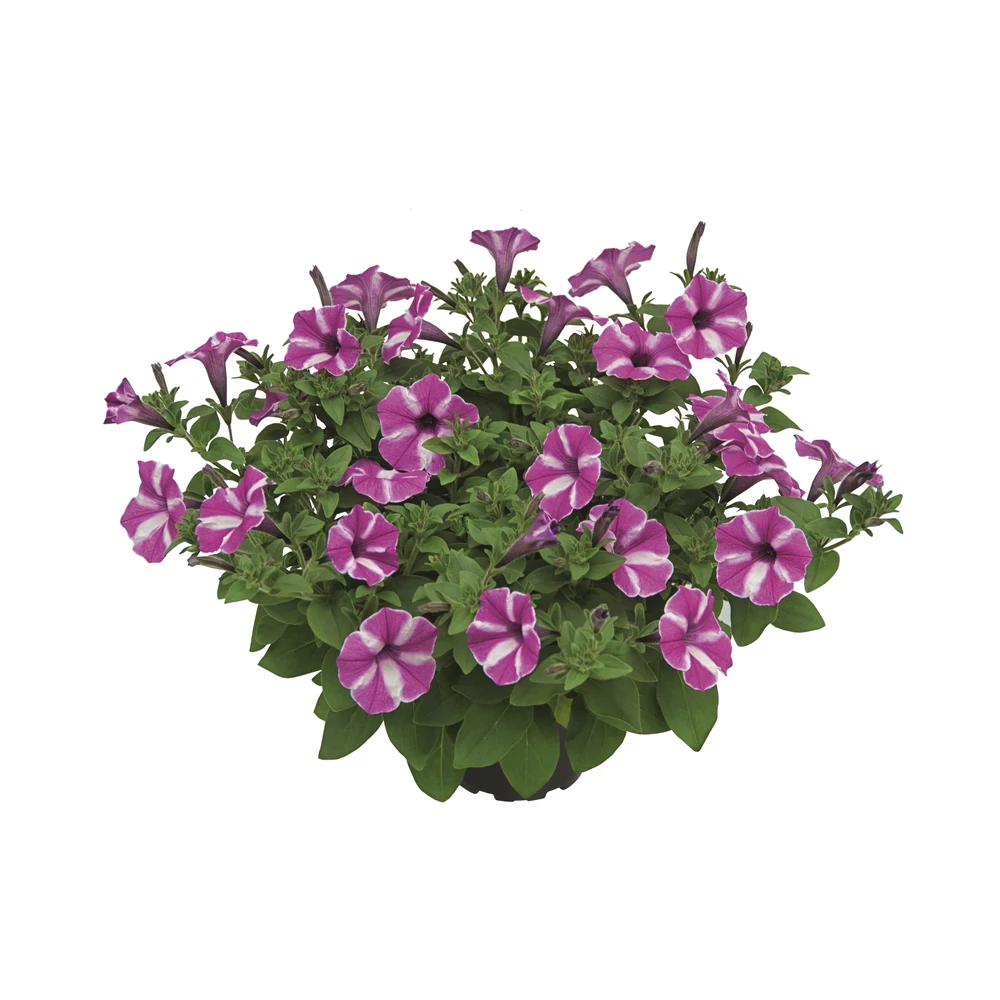 Petunia Vista Raspberry Star: Kis méretű, csillag-mintázatú virágok mesés tömege varázsolhat nyári virágcsodát az Ön balkonládájába is. Díjnyertes újdonság, a Proven Winners védjegyével ellátott, garantált minőség.